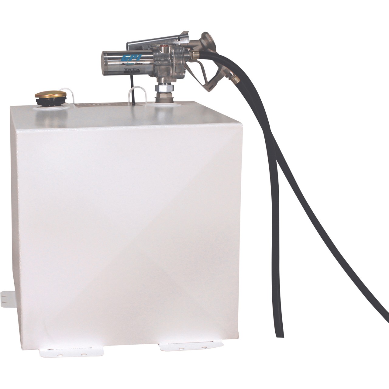 14-gauge steel tank features a durable, powder-coat finish, lockable cap, reinforced bung and much more. Square design allows for a variety of mounting locations in most full-size and mid-size trucks. Baffles add strength while preventing the contents from shifting too quickly. Not intended for use with gasoline.