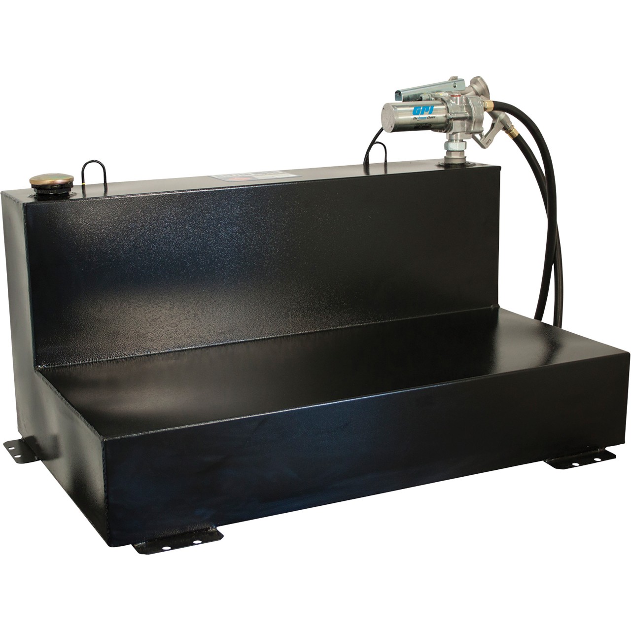 Better Built sturdy 14-gauge steel tank is designed for safe transport of nonflammable fuels. Tank features a lockable cap, reinforced bungs, mounting brackets, lifting eyes, durable powder-coat finish and more. Tank is 100% pressure and submersion tested. Built-in baffles add strength while preventing the contents from shifting too quickly. Includes GPI electric pump with 12V DC motor and rotary gear design that delivers up to 15 GPM flow rates. Pump is made of lightweight, durable cast aluminum and can be used with diesel fuel and kerosene. Not to be connected to existing fuel system. Tank is not intended for use with gasoline or other flammable fuels.
