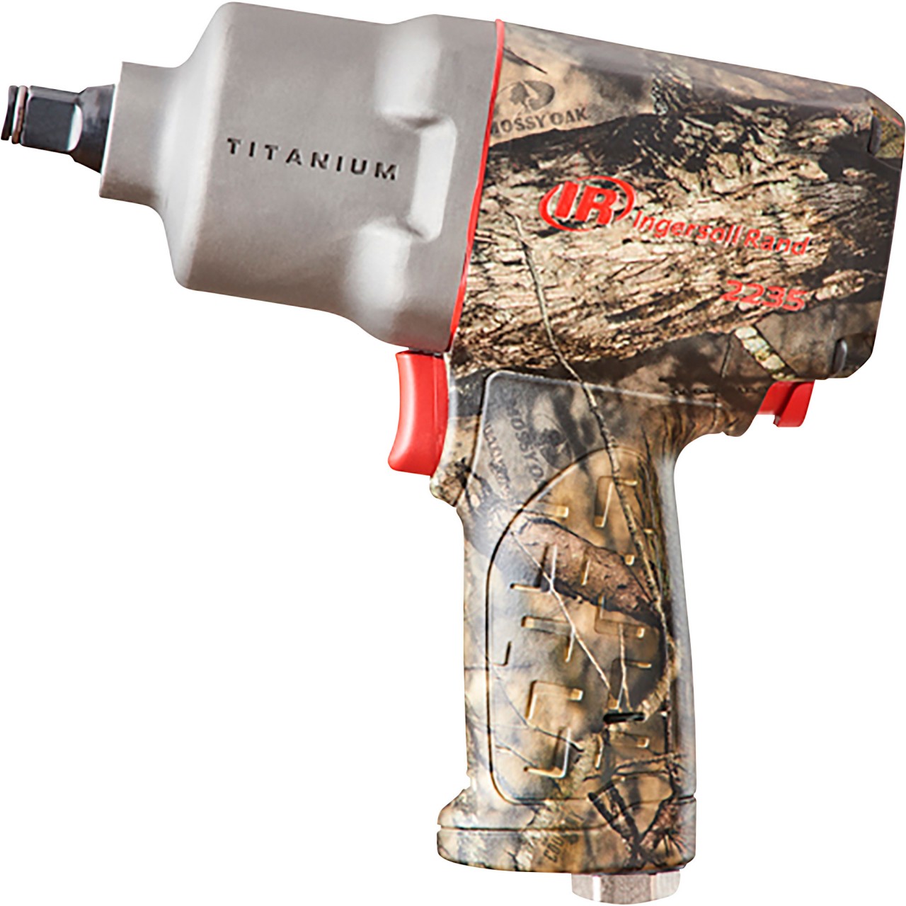 The Ingersoll Rand 1/2in. Impactool Camo Edition Air Impact Wrench is a powerful, durable and reliable workhorse that can handle the toughest fastening tasks. This unique 2235TiMAX impact wrench will have the official licensed printed camouflaged design by MOSSY OAK®. Every tool will have a different variation of the camo design, making each tool unique and special. Loosen the toughest bolts with 1,350 ft./lbs. of nut-busting torque and 930 ft.-lbs. of reverse torque, powered by a finely tuned twin hammer impact mechanism. The 2235TiMax is built with a titanium hammercase, steel wear plate and composite housing that protects the tool from the harshest environments. From the garage to the most demanding industrial sites, there is no job that will stand in its way.